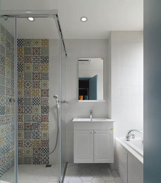 建議選擇尺寸較小的衛(wèi)浴產(chǎn)品,多增添收納空間,做好干濕分區(qū)。另外選用淺色的瓷磚提高空間明度可以使衛(wèi)生間看上去視覺上顯大一點。暗衛(wèi)的話可以安裝大吸力的排風(fēng)系統(tǒng)。