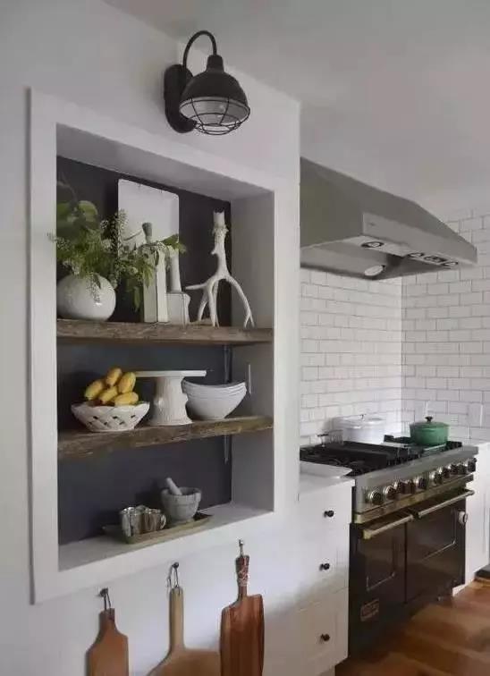 廚房空間的收納是非常重要的而對(duì)墻面的利用也十分常見(jiàn)除了置物板、掛桿之外給廚房墻面“打洞”同樣也能擁有收納物品的效果。