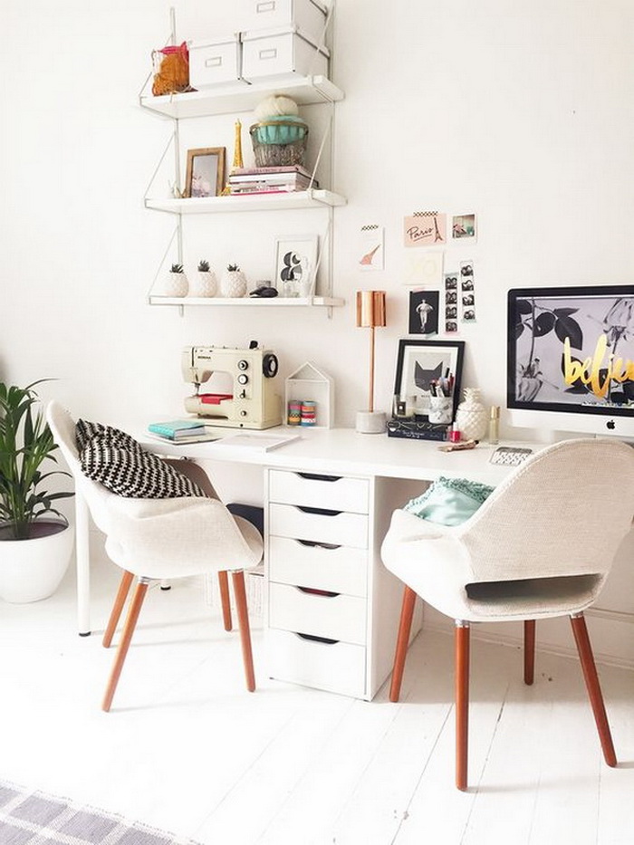 對于兩個人書桌布置,可以對著坐、并排坐或者背靠背,也可以L型轉(zhuǎn)角坐,看個人喜好和具體空間格局而定。