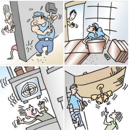房屋拆改現(xiàn)象雖然很普遍,但是并不是所有的地方都可以隨便改動,其中承擔上層樓房重量的房屋梁柱,墻體的受力鋼筋,平衡陽臺重量的陽臺矮墻,承擔整棟樓重量的承重墻等主體建筑不能改動。這些地方是整套房,甚至整棟樓的關(guān)鍵所在,如果有所改動會帶來很多意想不到的安全隱患。
