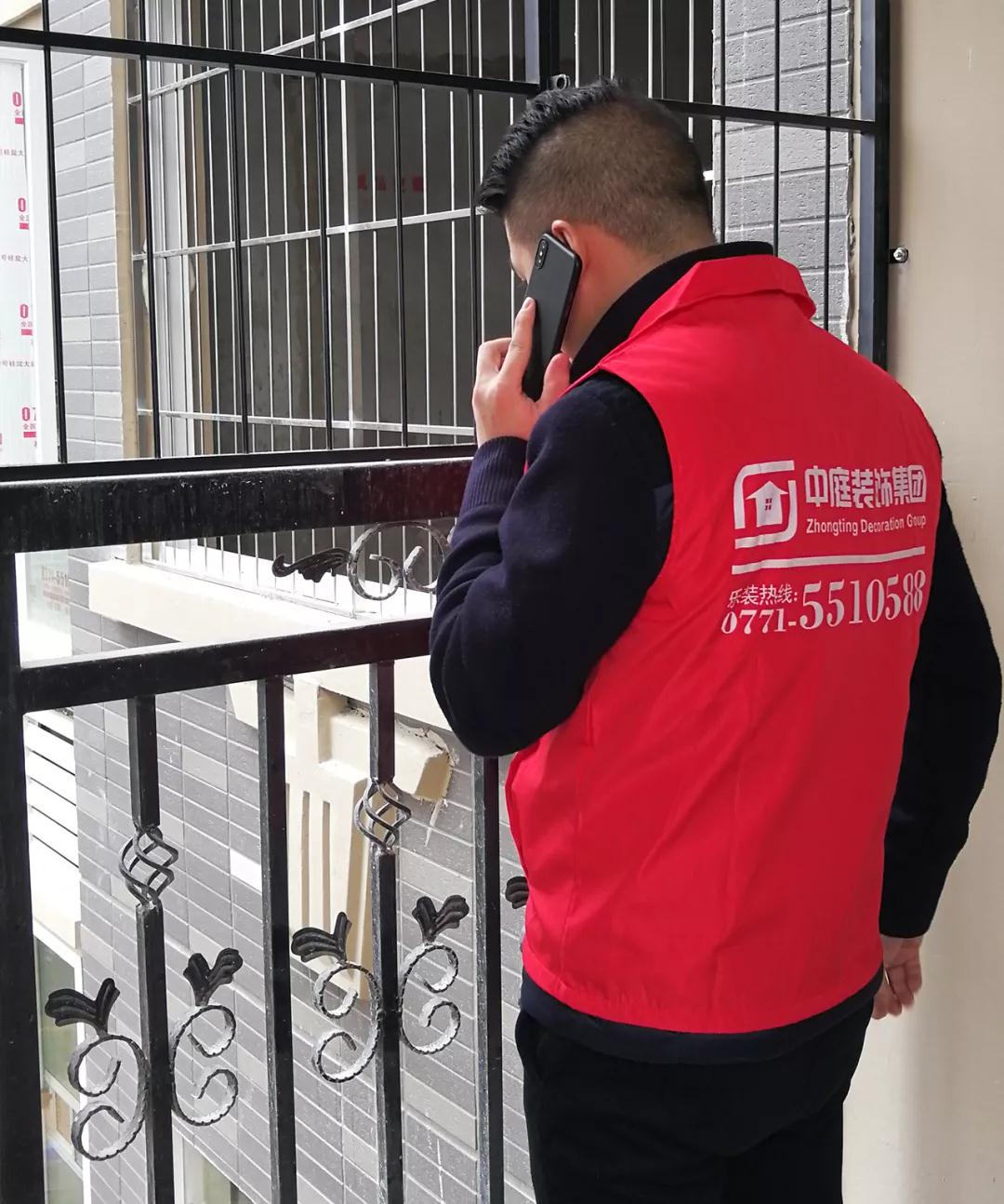 集團(tuán)副總裁張總在現(xiàn)場電話回訪業(yè)主,同時(shí)對(duì)工地存在的一些細(xì)節(jié)問題提出解決方案。