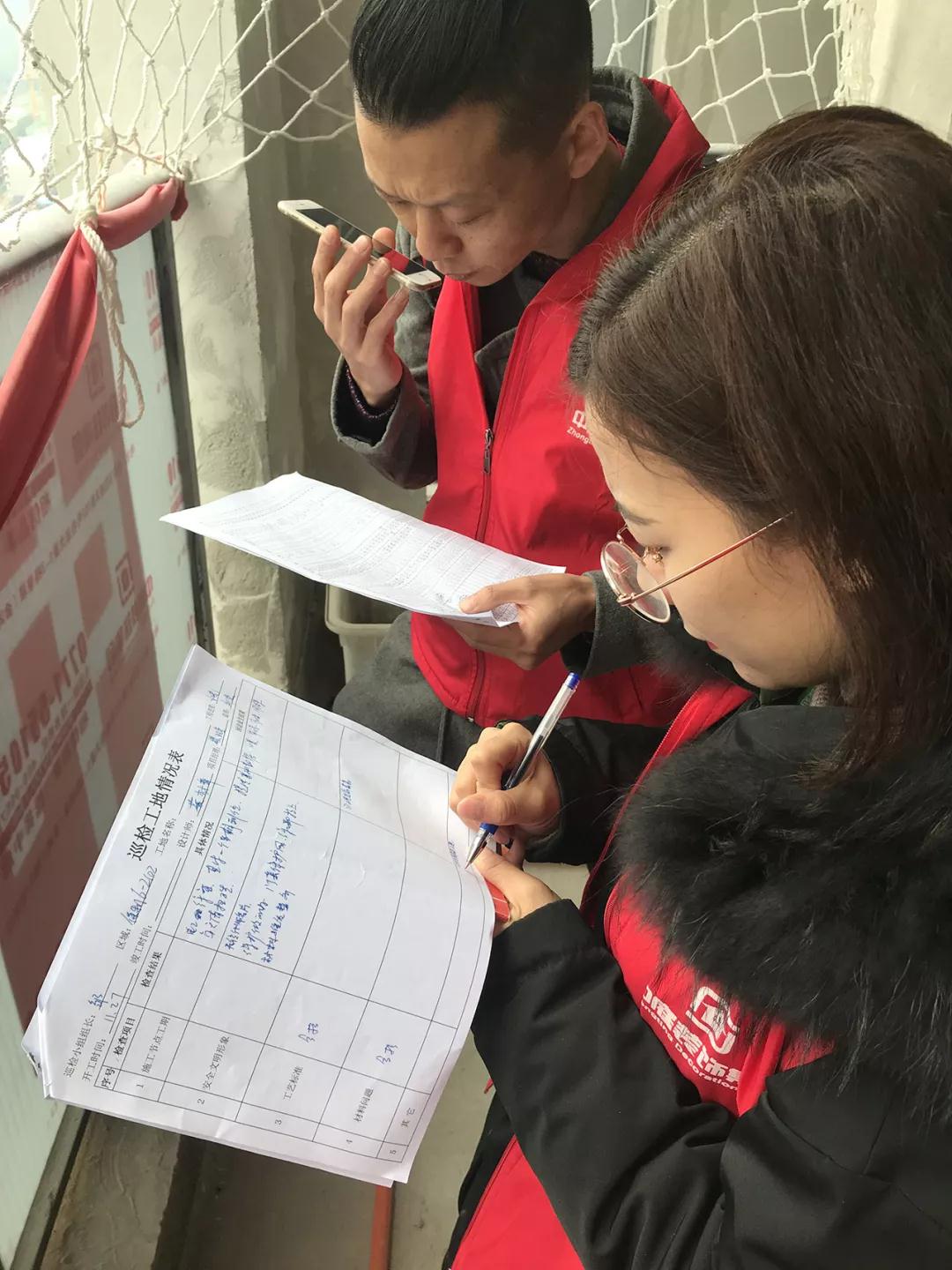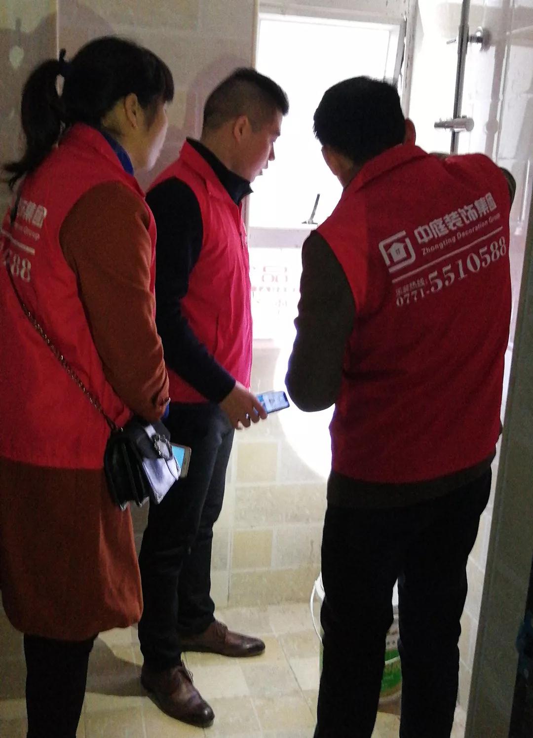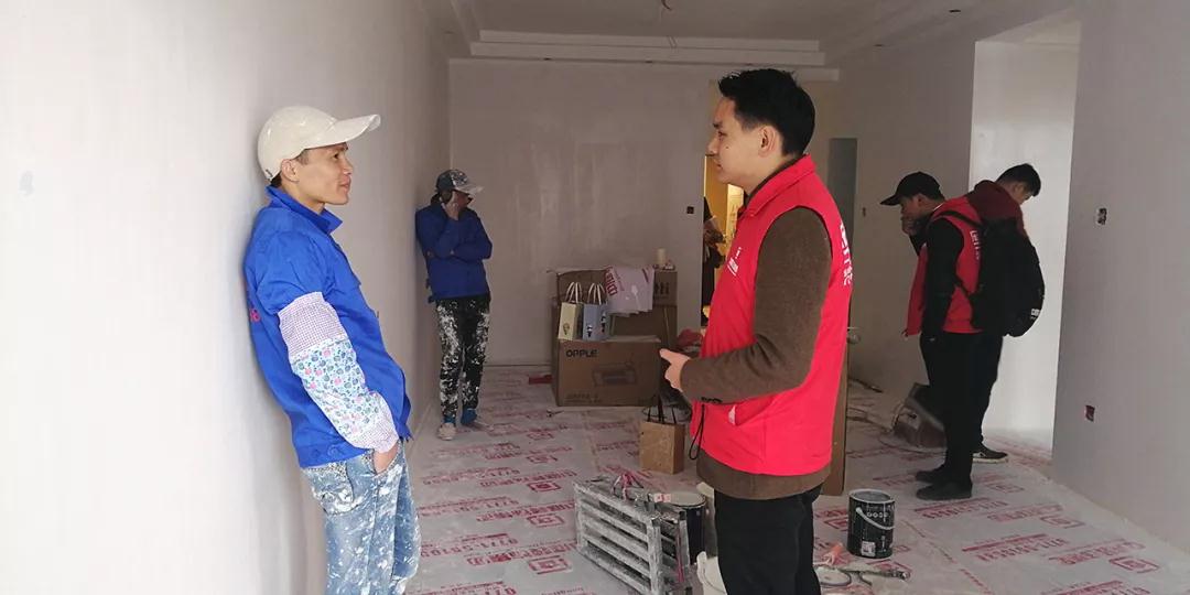 巡檢遇上業(yè)主正在施工現(xiàn)場,巡檢人員和業(yè)主交流;業(yè)主表示對(duì)公司的服務(wù)比較滿意,項(xiàng)目經(jīng)理和現(xiàn)場的工人都很好,有朋友需要裝修肯定會(huì)第一個(gè)推薦集團(tuán)。