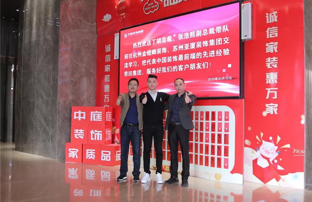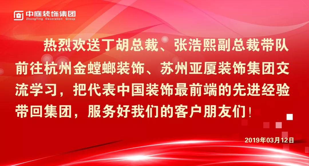 2019年3月12日,集團總裁丁胡、副總裁張浩熙帶隊前往杭州金螳螂裝飾、蘇州亞廈裝飾集團交流學(xué)習(xí)。