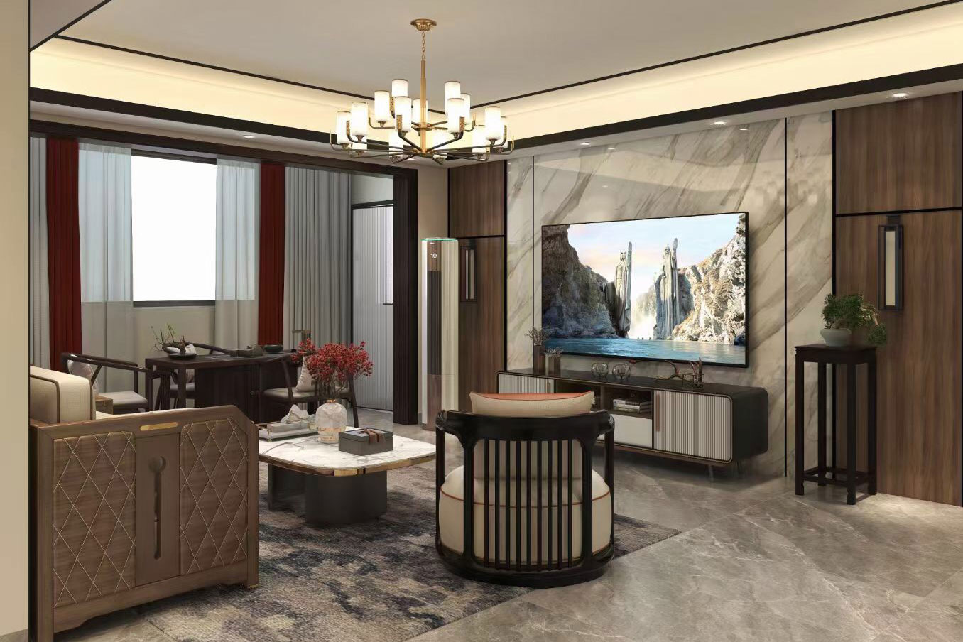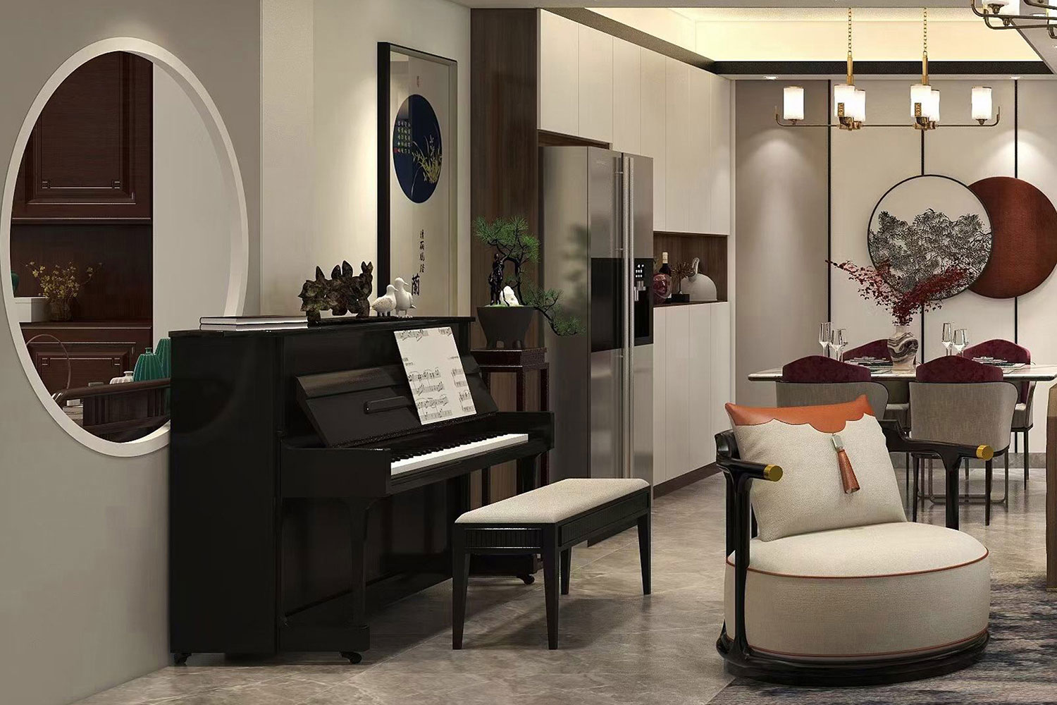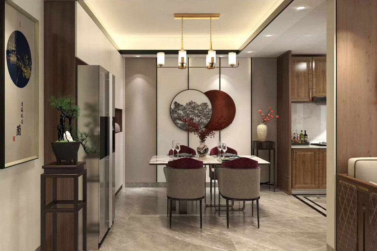 瀏覽量:436天立TT國際258㎡案例,戶型為:四房兩廳兩衛(wèi),屬于新中式風(fēng)格。整體家具陳設(shè)講究對稱,重視文化意蘊,整體以深色為主,以古香古色的中式擺件、掛畫來點綴空間,在一些細(xì)節(jié)上勾勒出禪宗的意境。但同時會使用現(xiàn)代時尚元素,比如附帶金屬邊框的桌椅、花瓶,以及背景掛飾等,使整體的家居設(shè)計中既有中式家居的傳統(tǒng)韻味,又有現(xiàn)代家居的時尚大氣。