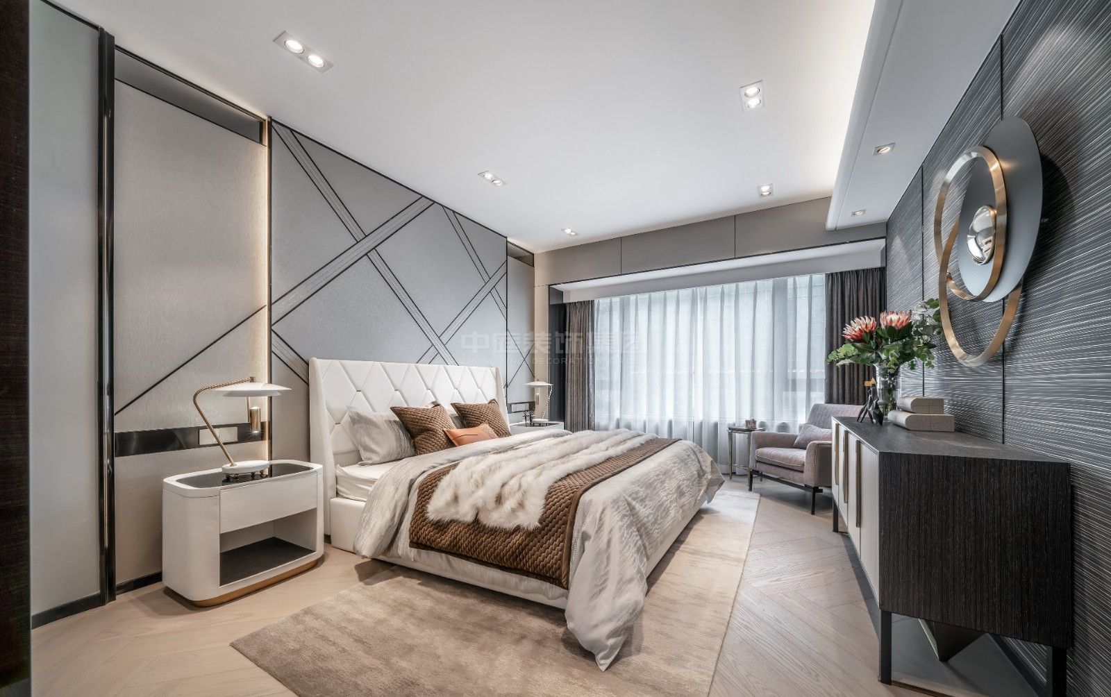 南寧輕奢風(fēng)格裝修案例:御峰國(guó)際125㎡三房效果圖