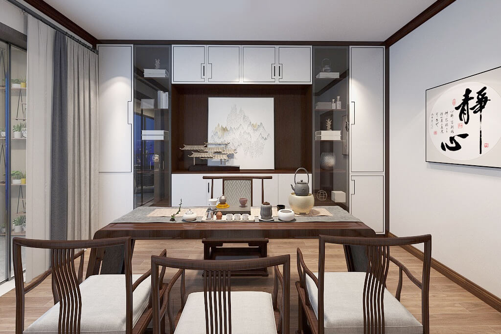瀏覽量:400在空間上的裝飾多采用簡潔硬朗的直線條,直線裝飾在空間中的使用,不僅反映出現(xiàn)代人追求簡單生活的居住要求,迎合主人家對中式家具的喜愛,中式的家具追求內(nèi)斂、質(zhì)樸的設(shè)計(jì)風(fēng)格,更加實(shí)用、更富現(xiàn)代感。新中式風(fēng)格的古典高雅又含有現(xiàn)代風(fēng)格的時(shí)尚元素,通過對傳統(tǒng)文化的認(rèn)識,將現(xiàn)代元素和傳統(tǒng)元素結(jié)合在一起,以現(xiàn)代人的審美需求來打造富有傳統(tǒng)韻味的事物,讓傳統(tǒng)藝術(shù)在當(dāng)今社會得到合適的體現(xiàn)。
