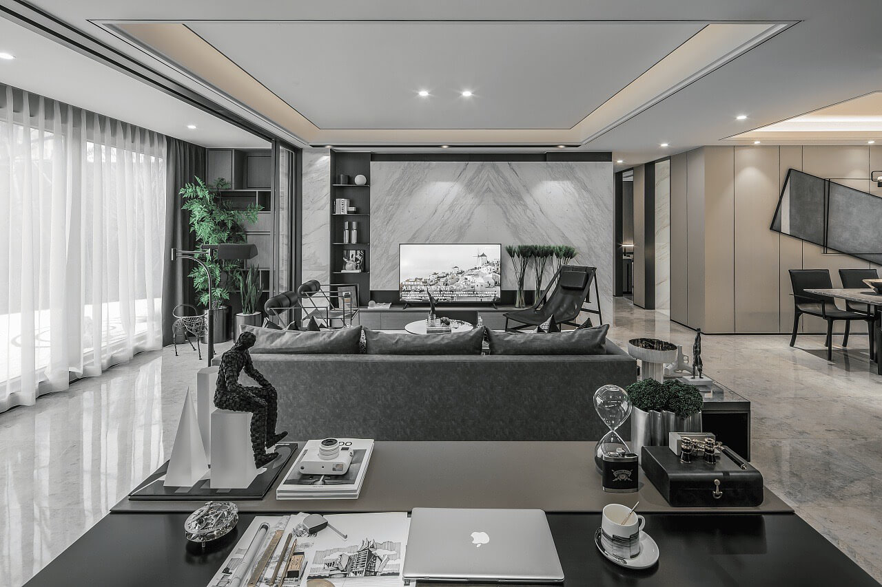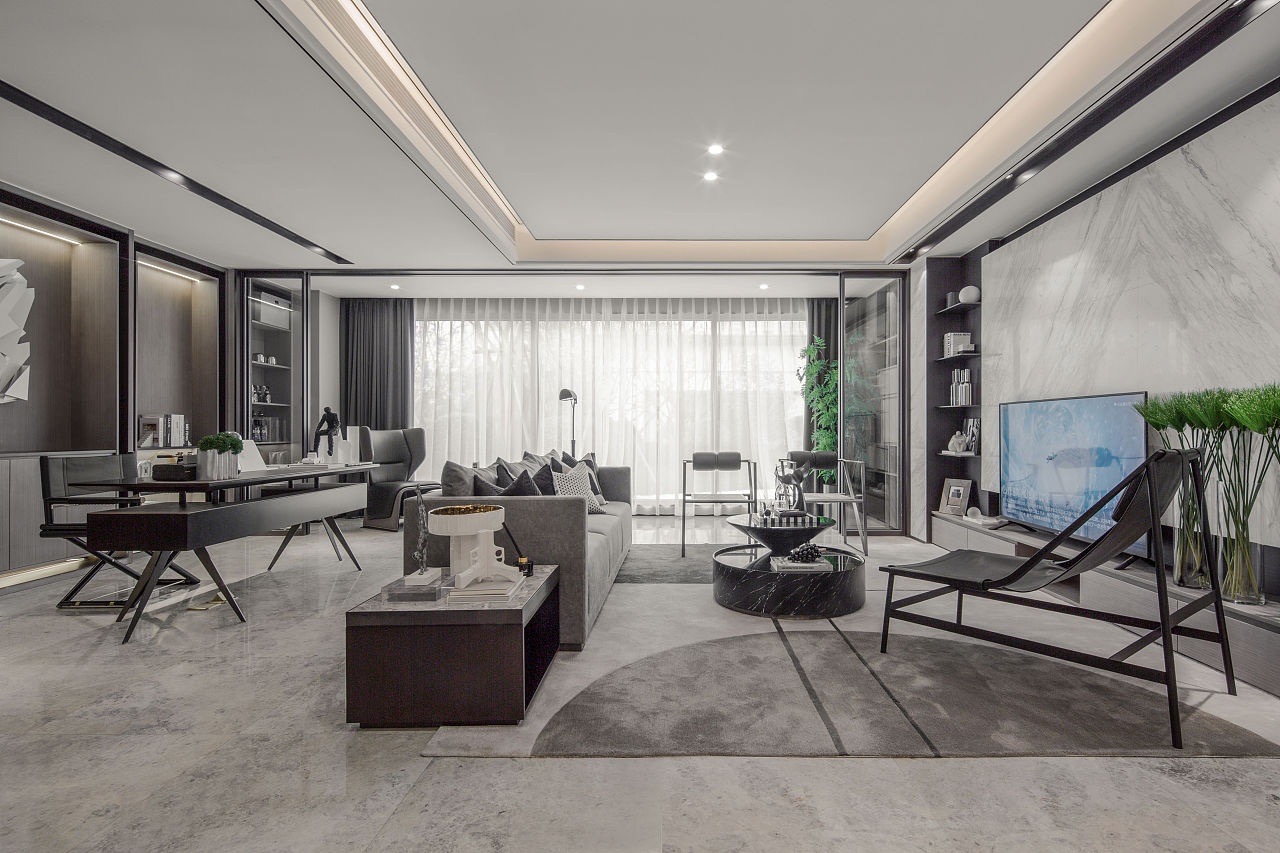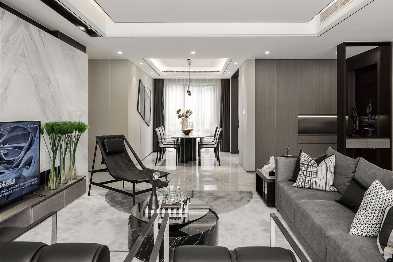 本案為現(xiàn)代簡約風格案例,業(yè)主喜歡簡約的黑白灰主色調(diào),設計師以經(jīng)典而理性的黑白碰撞,鋪陳于極具藝術調(diào)性的空間紋理,流暢的線條與留白化的處理,讓空間處處散發(fā)精細而不失簡致的都市風尚。