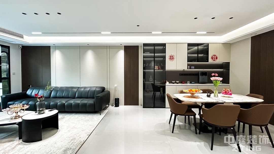這是一套130平的舊改案例。黑白灰的色調(diào)搭配,簡潔而純粹,沒有過多的繁雜色彩,卻能營造出一種高級感。