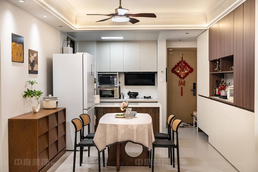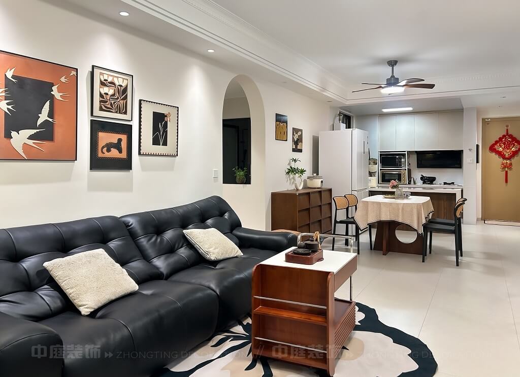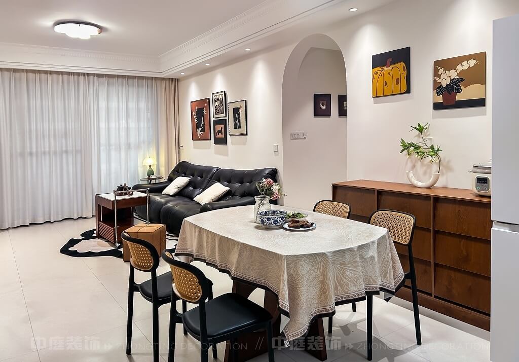 整體空間通過燈光設(shè)計(jì)、材質(zhì)搭配(皮質(zhì)、木質(zhì)、藤編等),營造出舒適且富有格調(diào)的居住氛圍,細(xì)節(jié)處的裝飾畫、綠植、中國結(jié)等元素,提升了空間的藝術(shù)感與生活氣息。復(fù)古與現(xiàn)代碰撞的家,每一處都戳中審美點(diǎn)!