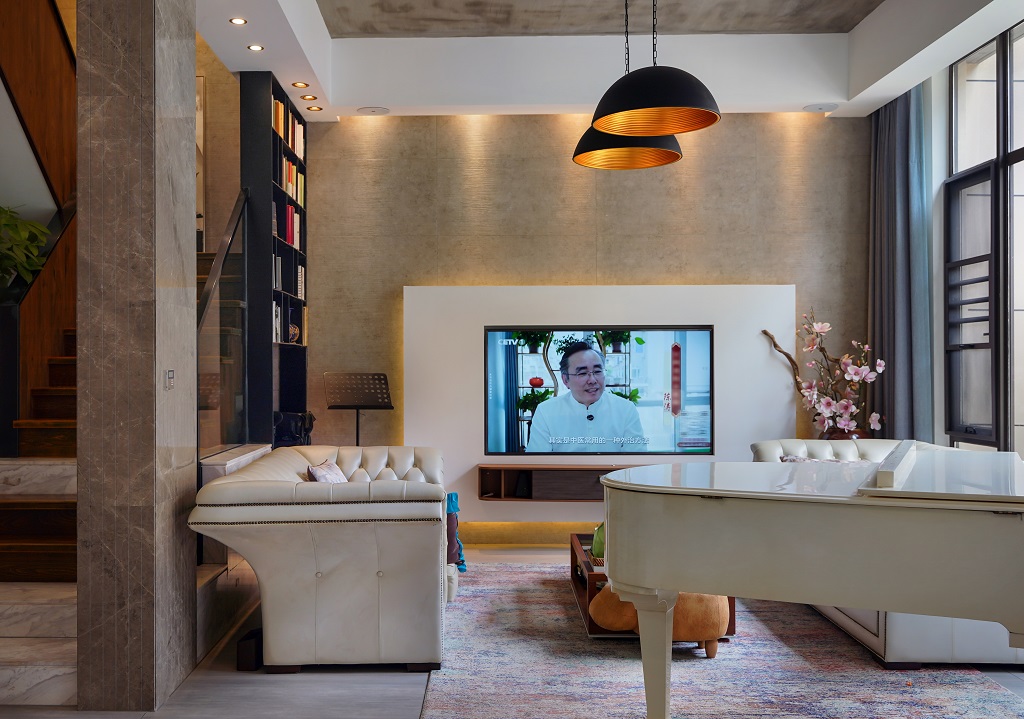瀏覽量:101這套房子裝修風(fēng)格是工業(yè)風(fēng)與輕奢風(fēng)的巧妙融合,日常又不失格調(diào)。水泥質(zhì)感的吊頂保留了工業(yè)風(fēng)的粗獷感,搭配暖黃色的吊燈,瞬間讓空間溫馨起來。墻面采用質(zhì)感石材與簡約板材結(jié)合,電視背景墻的設(shè)計簡潔大氣。家具選擇了皮質(zhì)的輕奢款沙發(fā),觸感舒適且顯質(zhì)感。樓梯區(qū)域很有特色,木質(zhì)臺階搭配金屬扶手,旁邊的綠植和書架為空間增添了生機(jī)與文藝氣息。還有那架白色鋼琴,讓整個家在日常中多了一份藝術(shù)氛圍,無論是休閑還是待客,都能感受到這份融合了工業(yè)硬朗與輕奢精致的舒適日常。