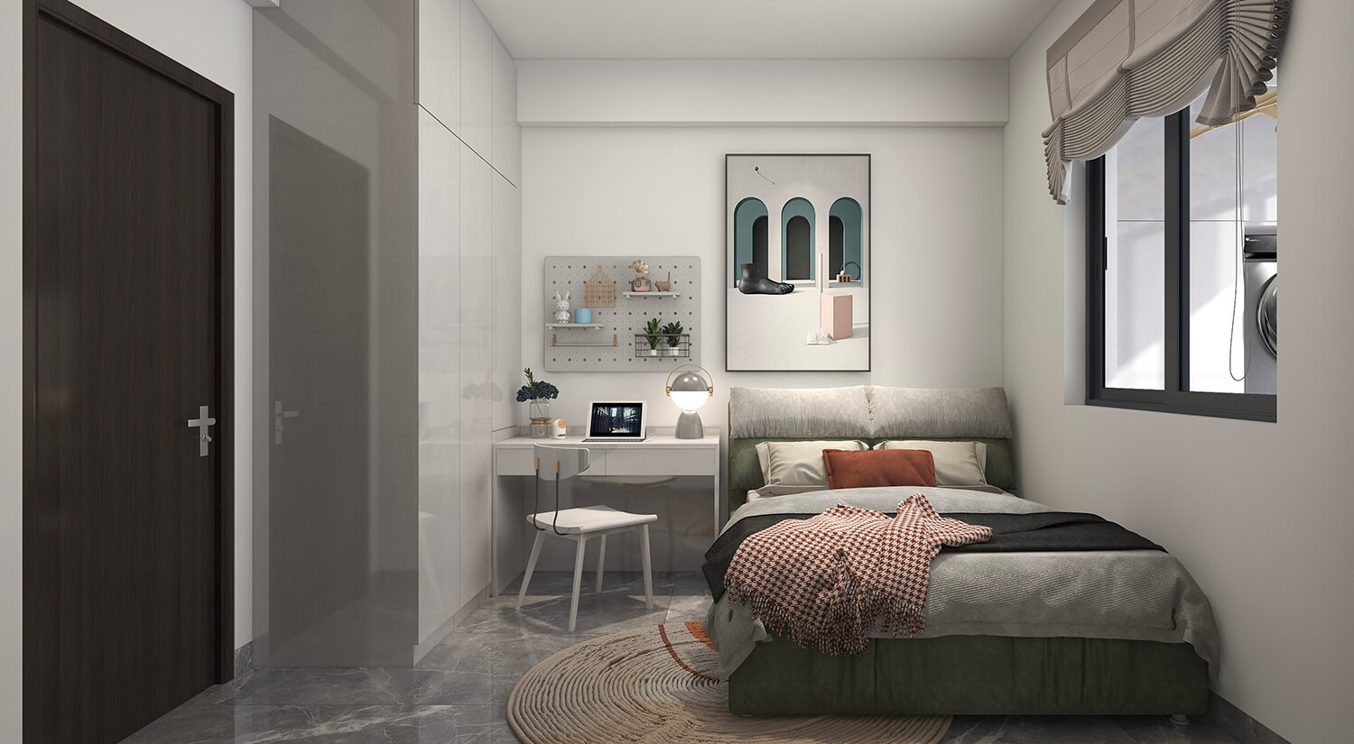 本案例戶型為:3房1廳1衛(wèi),總面積130㎡。整體家具通常采用簡(jiǎn)約的線條和材料。家具的色調(diào)以灰色、米色、白色為主,這些顏色可以營(yíng)造出一個(gè)舒適和溫馨的氛圍。